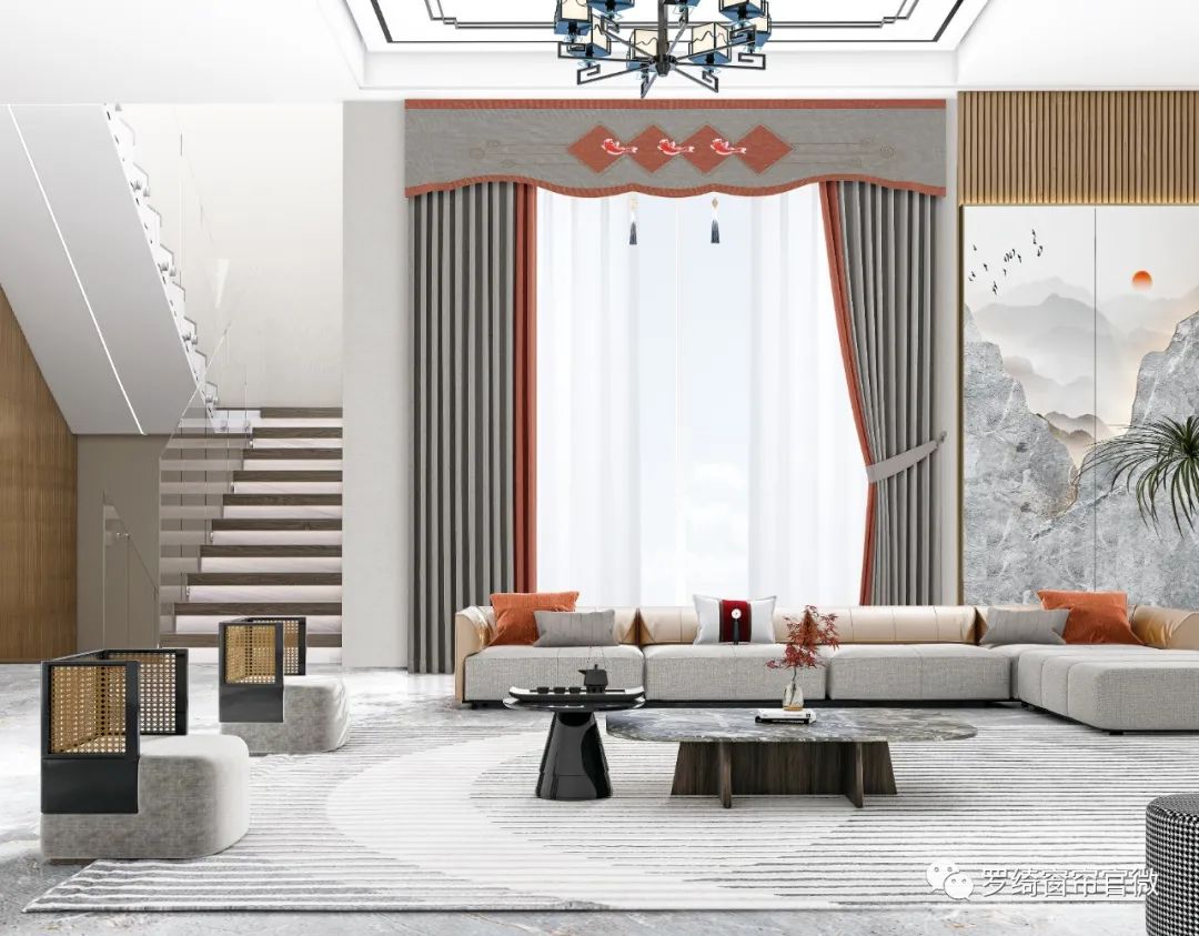 簾頭上的造型設計,采用了傳統的斑馬樣式,邊上點綴著不規則大小的金色長條圓點等,展現出了空間質感與視覺的衝擊力,營造了一種溫馨、時尚的輕奢居住環境。馬寓意著赤誠,血與火,剛烈,奔馳。